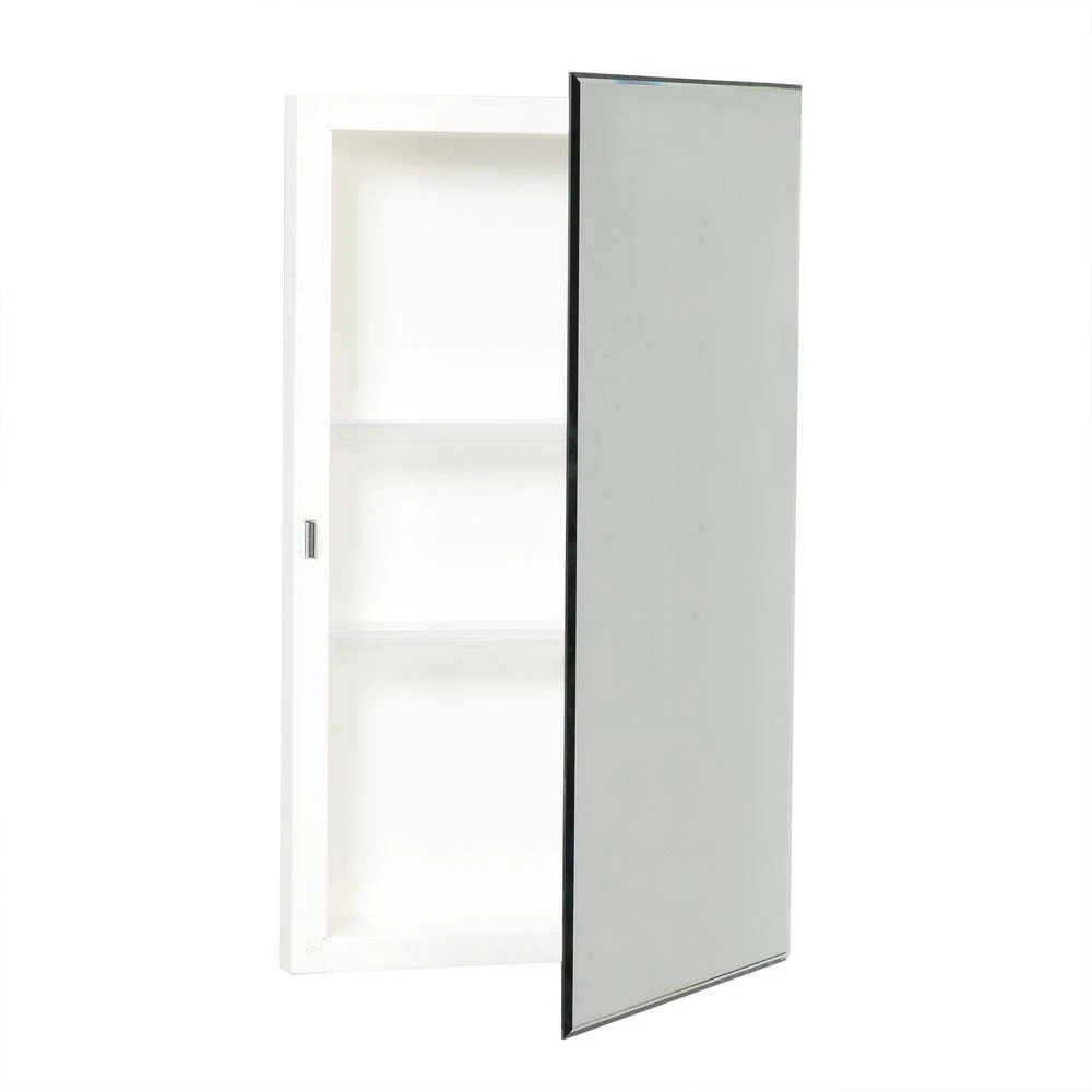 This 16 in. X 26 in. Recessed Mirrored Medicine Cabinet is pre-assembled for fast, easy installation on either a recessed or smooth surface. The cabinet’s two sturdy shelves can be adjusted to suit your unique needs. Its frameless, beveled mirror has prismatic edges that create a modern, stylish appearance. A reversible door makes this cabinet’s door easy to open with either the left or right hand.