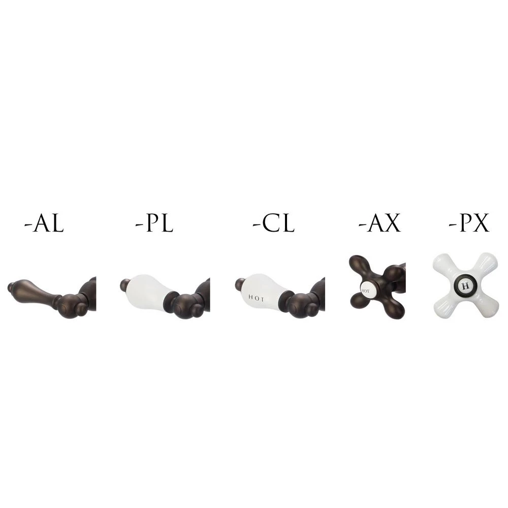 - Available in lever, cross, “hot” and “cold” labeled porcelain lever, porcelain lever, and porcelain cross handle styles