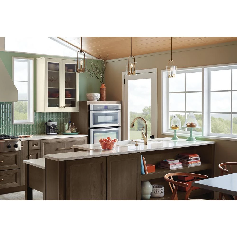 - High-arc pull-down spout swivels 360° for ease of use