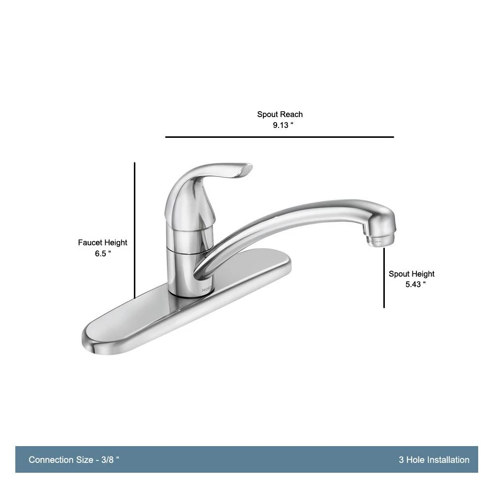With its smooth curves and minimalistic design, the Adler one-handle faucet seamlessly blends with a variety of kitchen décor preferences. The one-handle lever makes it easy to adjust the water, and a matching side spray is included to make cleanup simple. Thanks to the new tool-free faucet installation method, Adler installs 40% faster than Moen faucets without the new installation option. Available in a Chrome finish.
