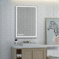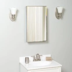 27.25 In. W X 32.00 In. H Framed Rectangular Beveled Edge Bathroom Vanity Mirror In White Finish