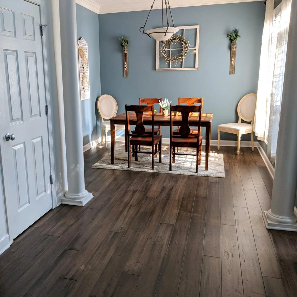 Bamboo is the fastest growing plant on earth and can be harvested sustainably without causing any damage to the plant or surrounding environment. That makes bamboo a viable and eco-friendly alternative to traditional lumber. This woody grass is also unbelievably strong, especially after undergoing the proprietary Fossilizing process whereby stalks are shredded into very fine fibers and compressed into solid wood. The resulting material earns scores of 5,000+ on the Janka Hardness Scale – over three times harder than maple or oak. Harder, denser flooring delivers superior durability and indent protection. In addition to being extra eco-friendly and strong, Fossilized bamboo is beautiful and capable of being stained an array of colors to complement any design aesthetic.
