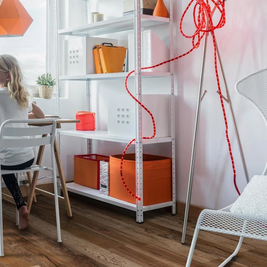Planks are 100% waterproof and easy to clean, making them ideal for kitchens, bathrooms, kids’ rooms, and basements