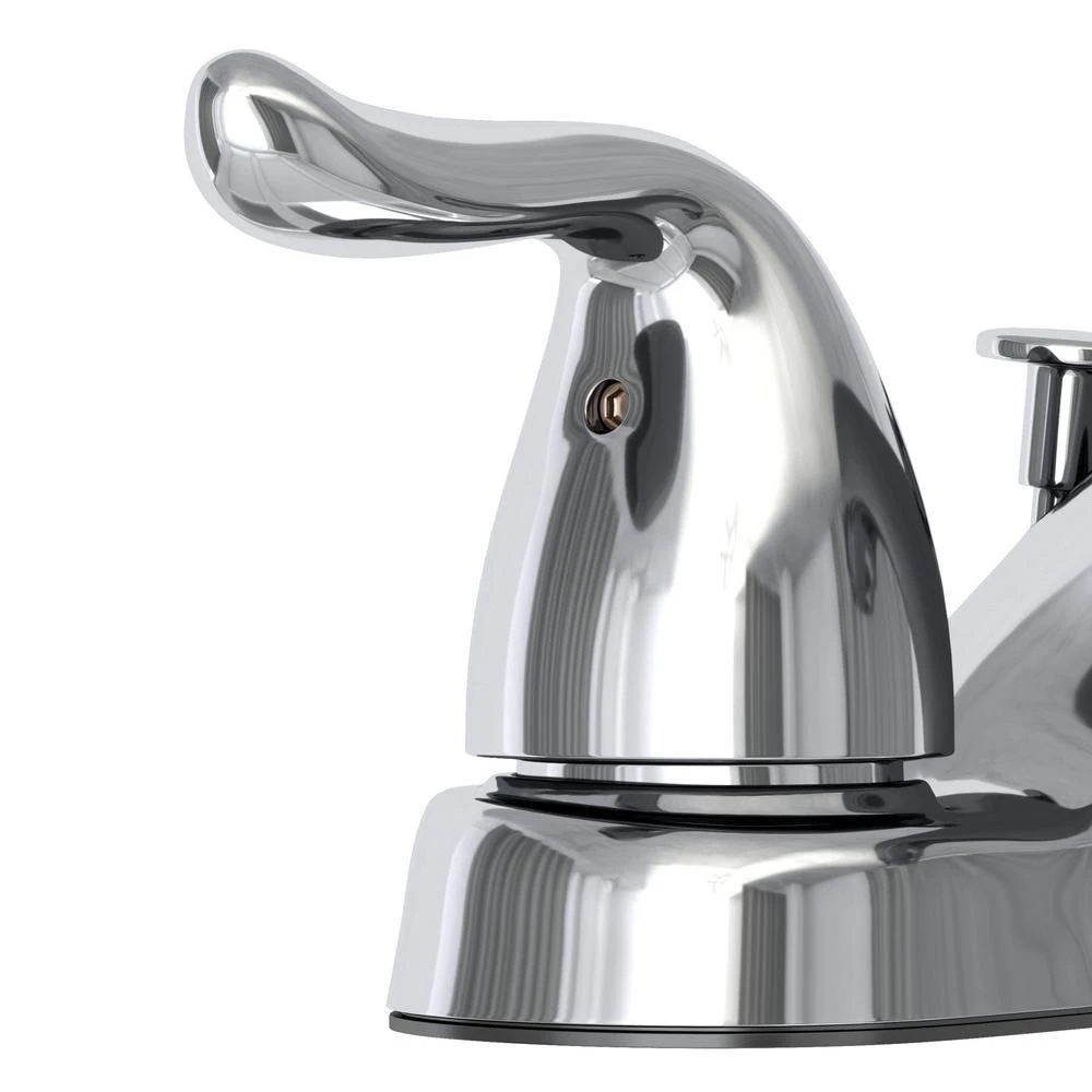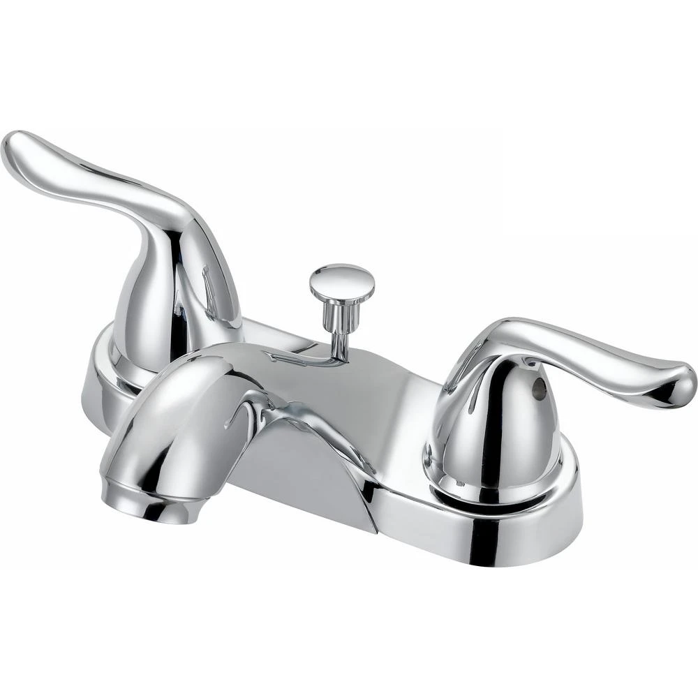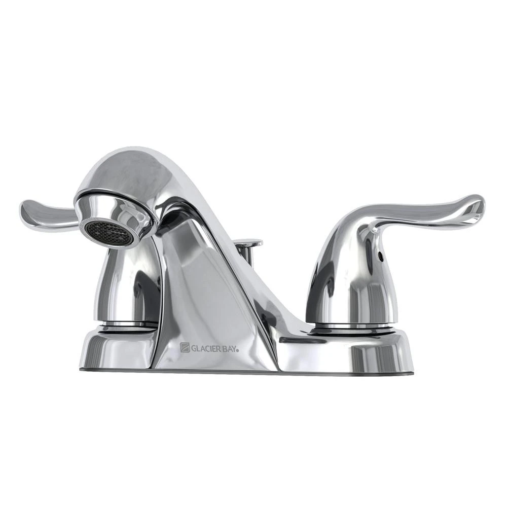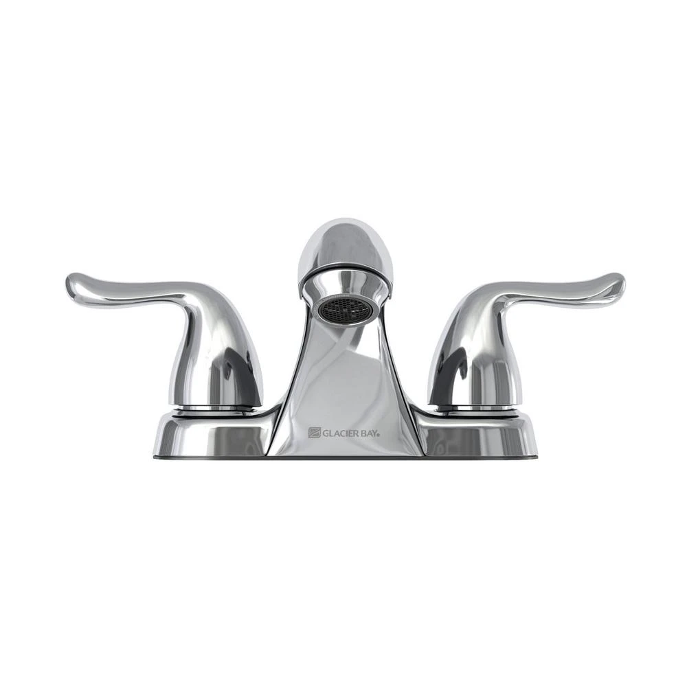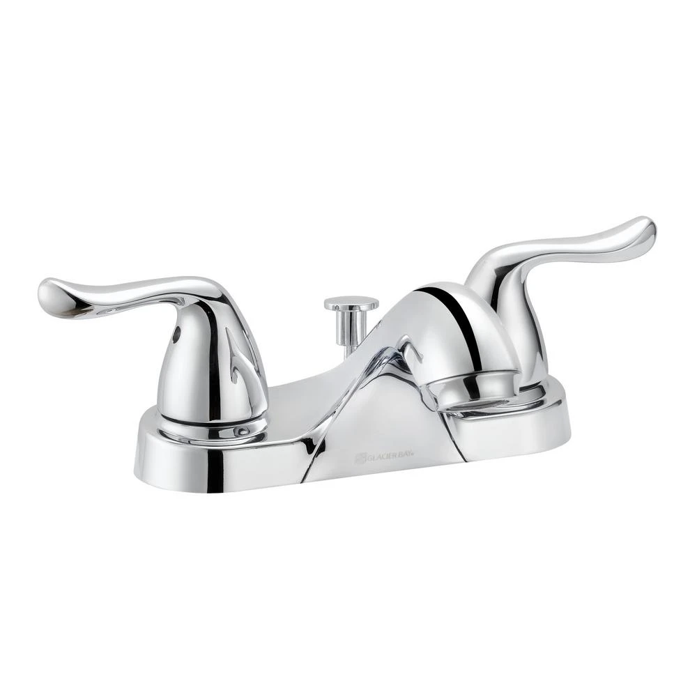 The Glacier Bay Constructor 4 in. 2-Handle Mid-Arc Lavatory Faucet with Click install Pop-Up Assembly in Chrome Finish has an elegant, curved design that will complement a wide variety of bathroom or powder room decor. WaterSense certified, this faucet has a 1.2 GPM rate to help reduce water use and washerless cartridges to prevent drips. Easy to use with easy control metal lever handles, the sleek middle-arc spout allows plenty of sink space for bath tasks. Built-to-last with a durable and easy to clean triple chrome-plated finish, a pop-up drain assembly set is included. Pair with other pieces from the Constructor Collection for a complete and polished look. Limited lifetime warranty.