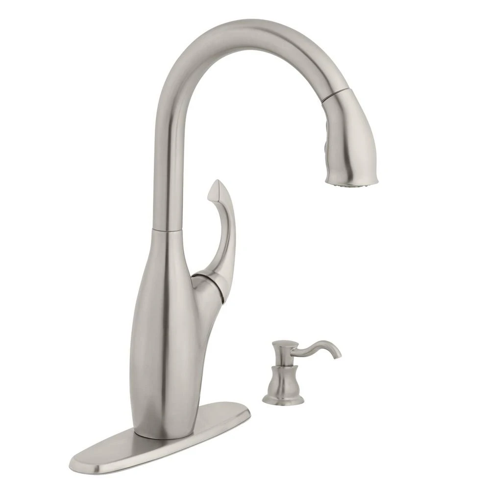 - Pull-down sprayer and included soap dispenser for versatility and convenience