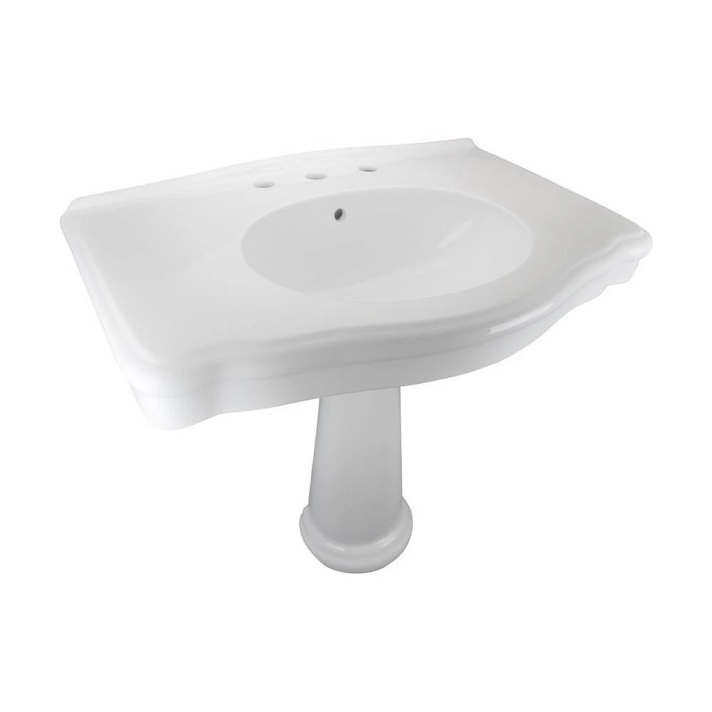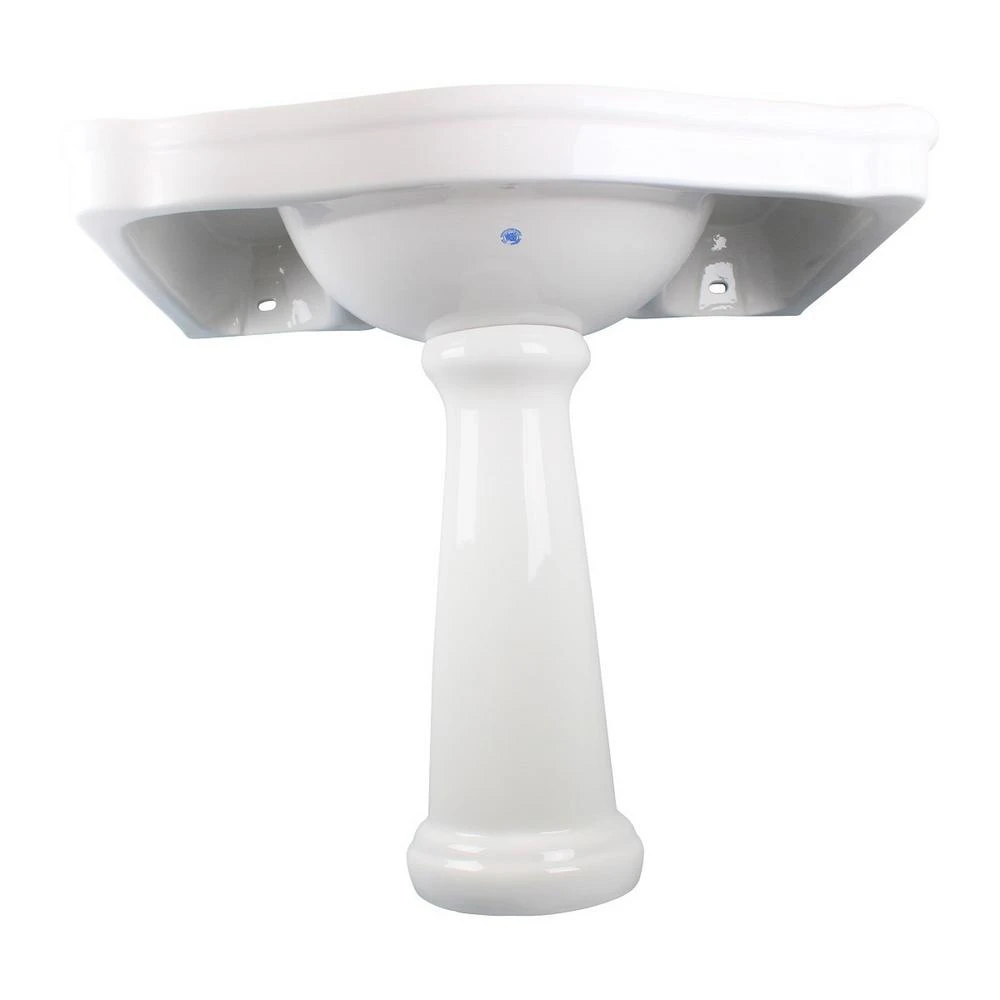 - Porcelain white pedestal sink