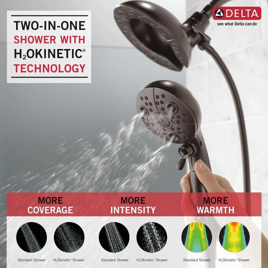The In2ition Two-in-One Shower gets water where you need it most using the integrated shower head and hand shower separately or together