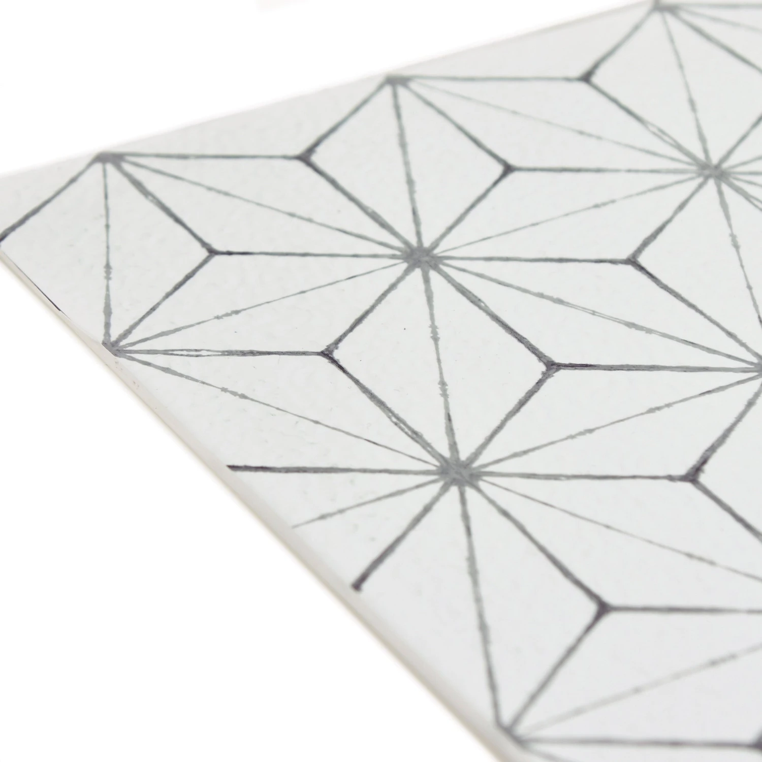 - Update the look of dated floors with this grey and white geometric peel and stick floor tiles; the intricate details will lend your floors a refreshing and modern new look