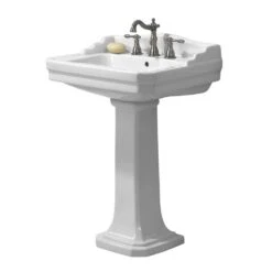 Reminiscent of the traditional elegance of American design from the early 1900s, this pedestal lavatory combines subtle lines and graceful curves for universal appeal. Constructed of durable, vitreous china, it will maintain its lustrous beauty for years to come.