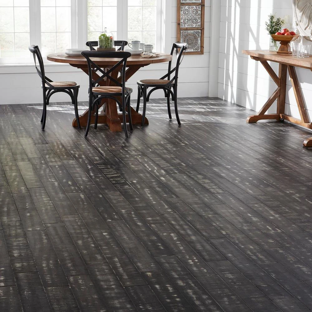 - Prefinished black Color, Low Gloss, Hand scraped Finish