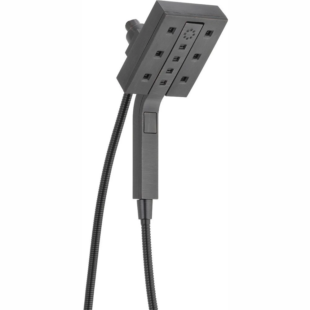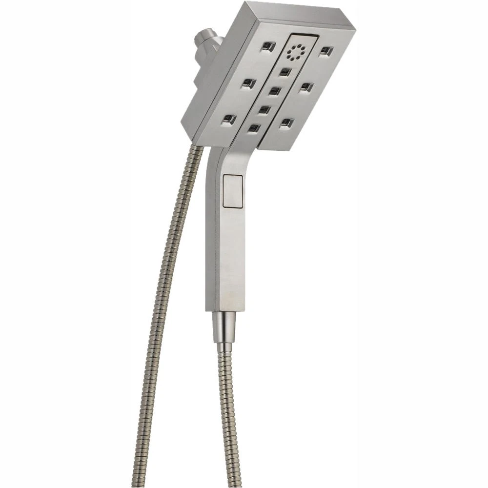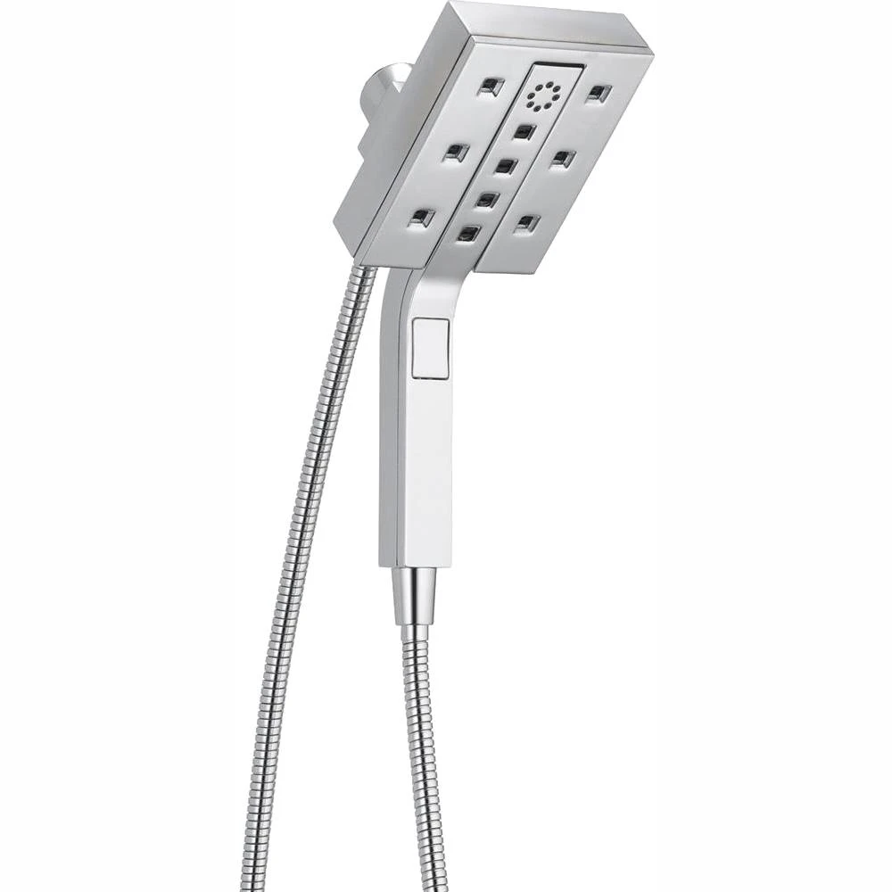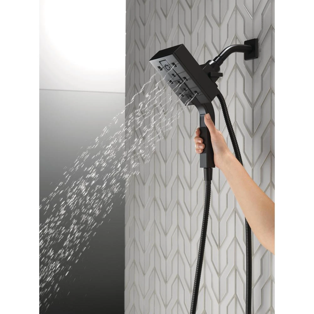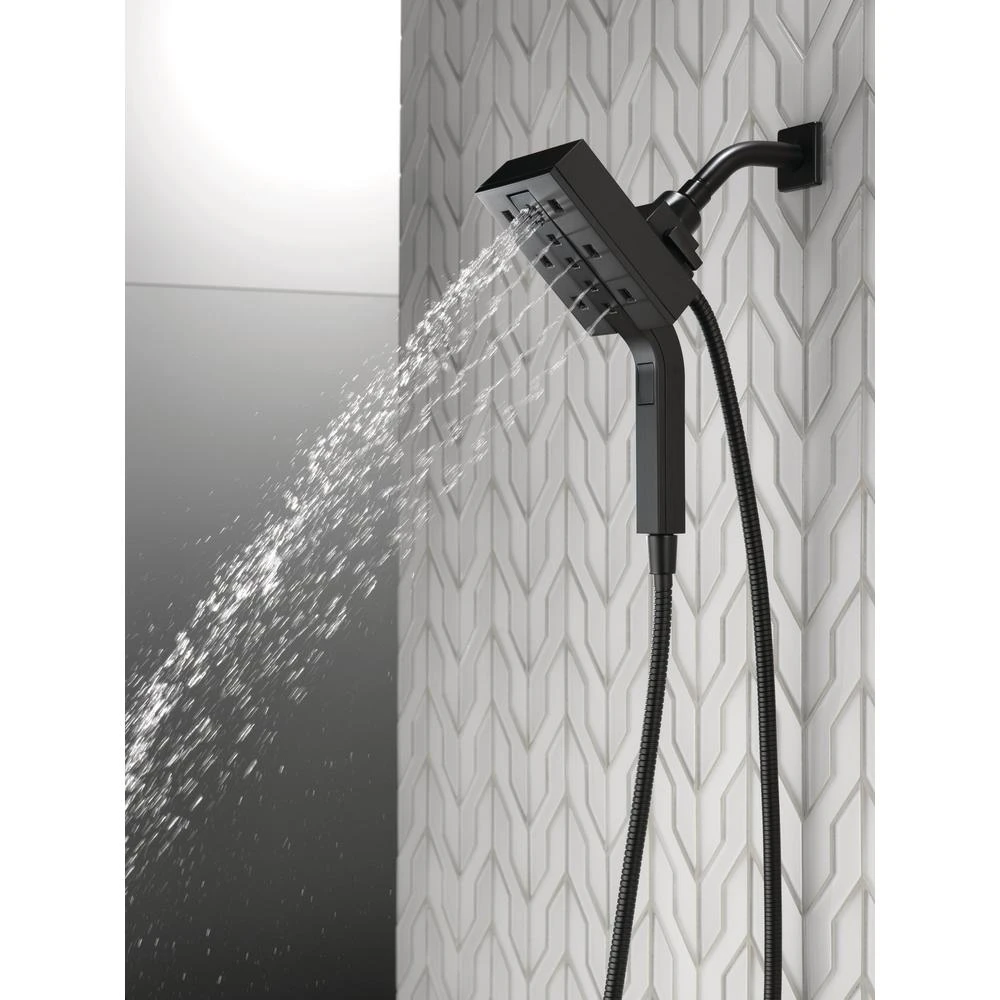 The Delta In2ition Two-in-One Shower features a detachable hand shower which can be used separately from or simultaneously with the shower head. This integrated dual-functionality gives you maximum flexibility without sacrificing warmth, as you can choose to have water streaming from the shower head only, the hand shower only or both the shower head and hand shower at once. H2Okinetic showers sculpt water into a unique wave pattern, giving you more coverage than a standard shower head. The end result is a shower that provides more coverage, more warmth and more intensity for a truly drenching shower experience. Delta MagnaTite Docking uses a powerful integrated magnet to pull your faucet spray wand or In2ition hand shower precisely into place and hold it there so it stays docked when not in use. While other products may gather unsightly mineral build-up over time, Delta soft rubber Touch-Clean spray holes allow any mineral residue to simply be wiped away for an instantly refreshed look – with no need for soaking or the aid of chemical cleaners. The pause setting gives you ample space for shaving, lathering and other shower tasks, then easily restarts the water with the temperature where you left off. This spray setting helps you conserve water, so you can worry less about depleting your supply of hot water and you help the environment too. Delta WaterSense labeled showers use at least 20% less water than the industry standard-saving you money without compromising performance.