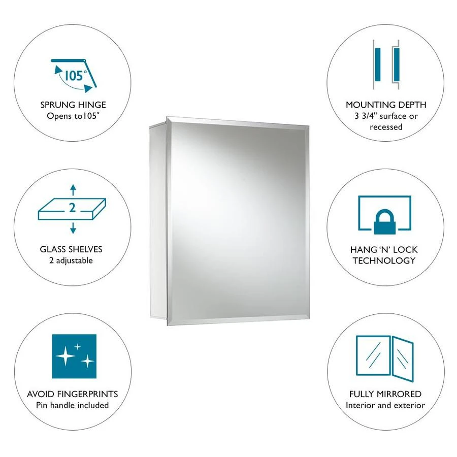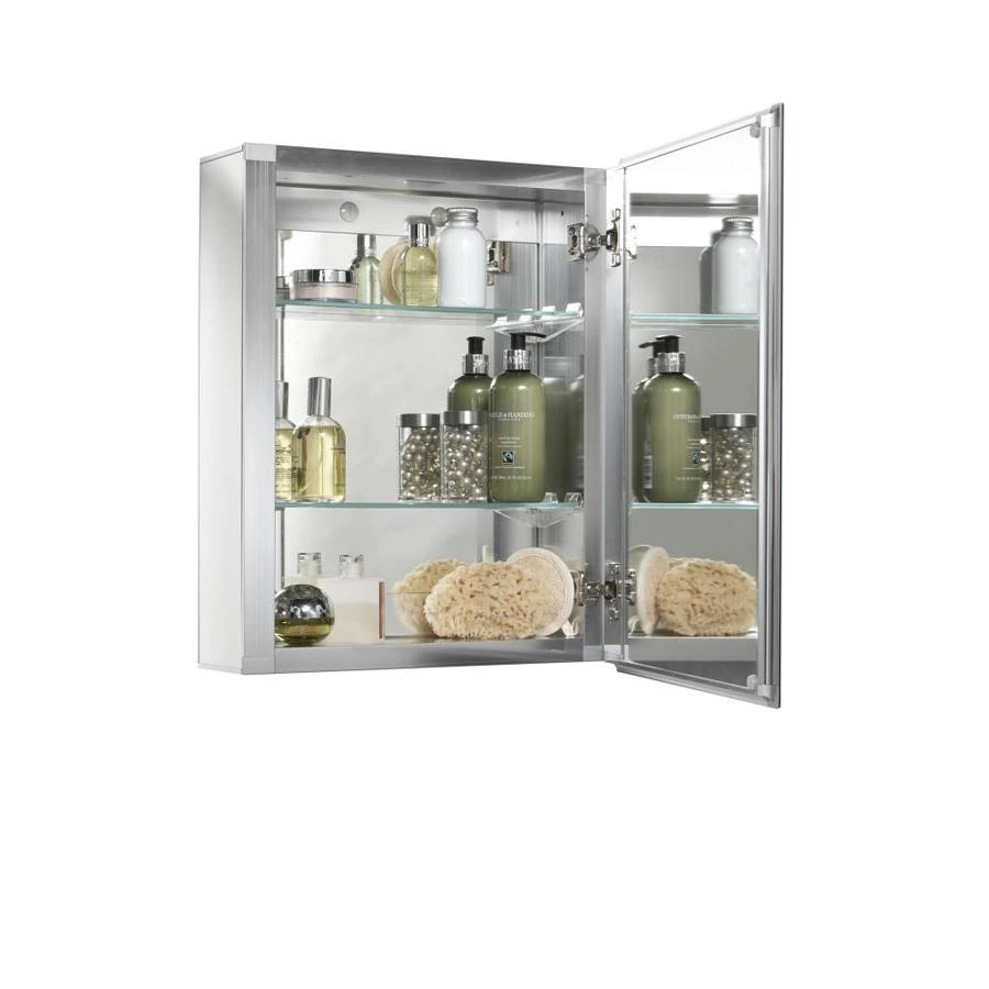 Constructed from high quality aluminum with durable double sided mirrored doors and a mirrored internal back panel