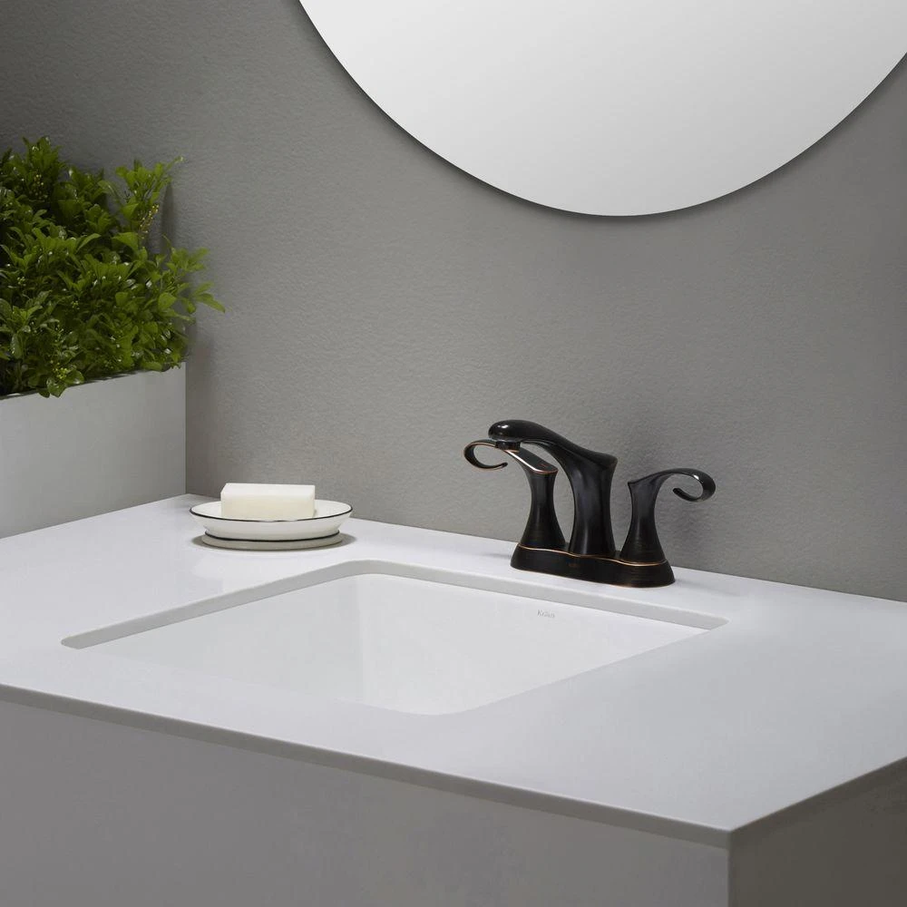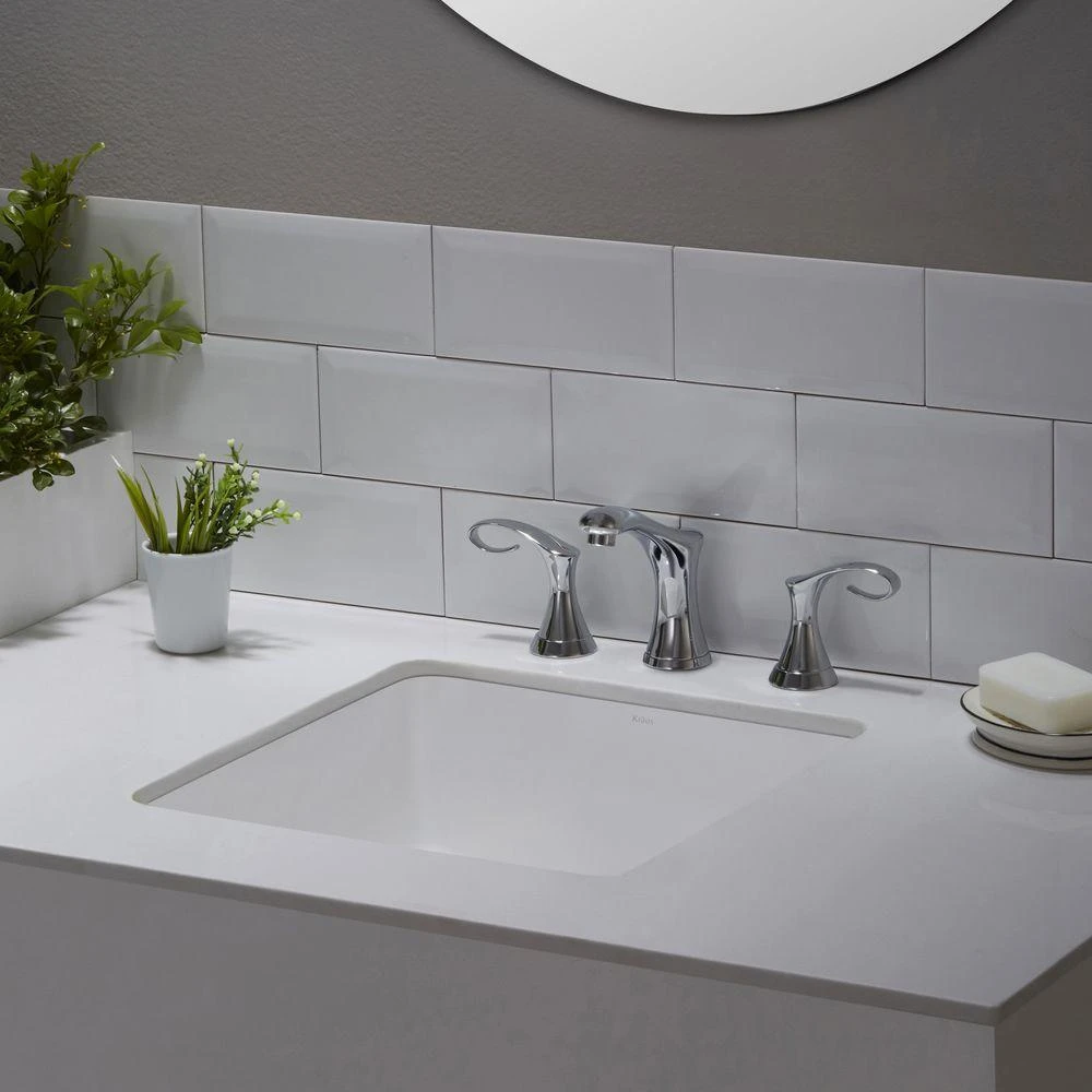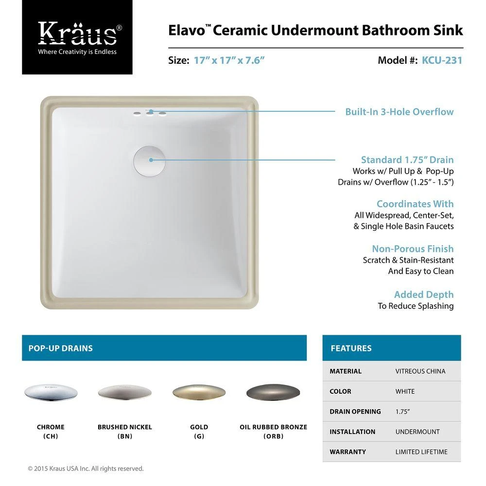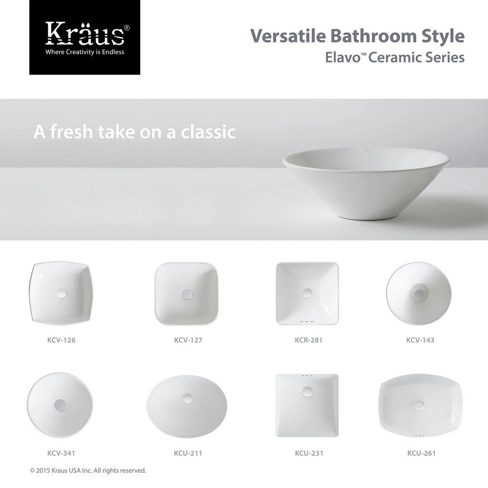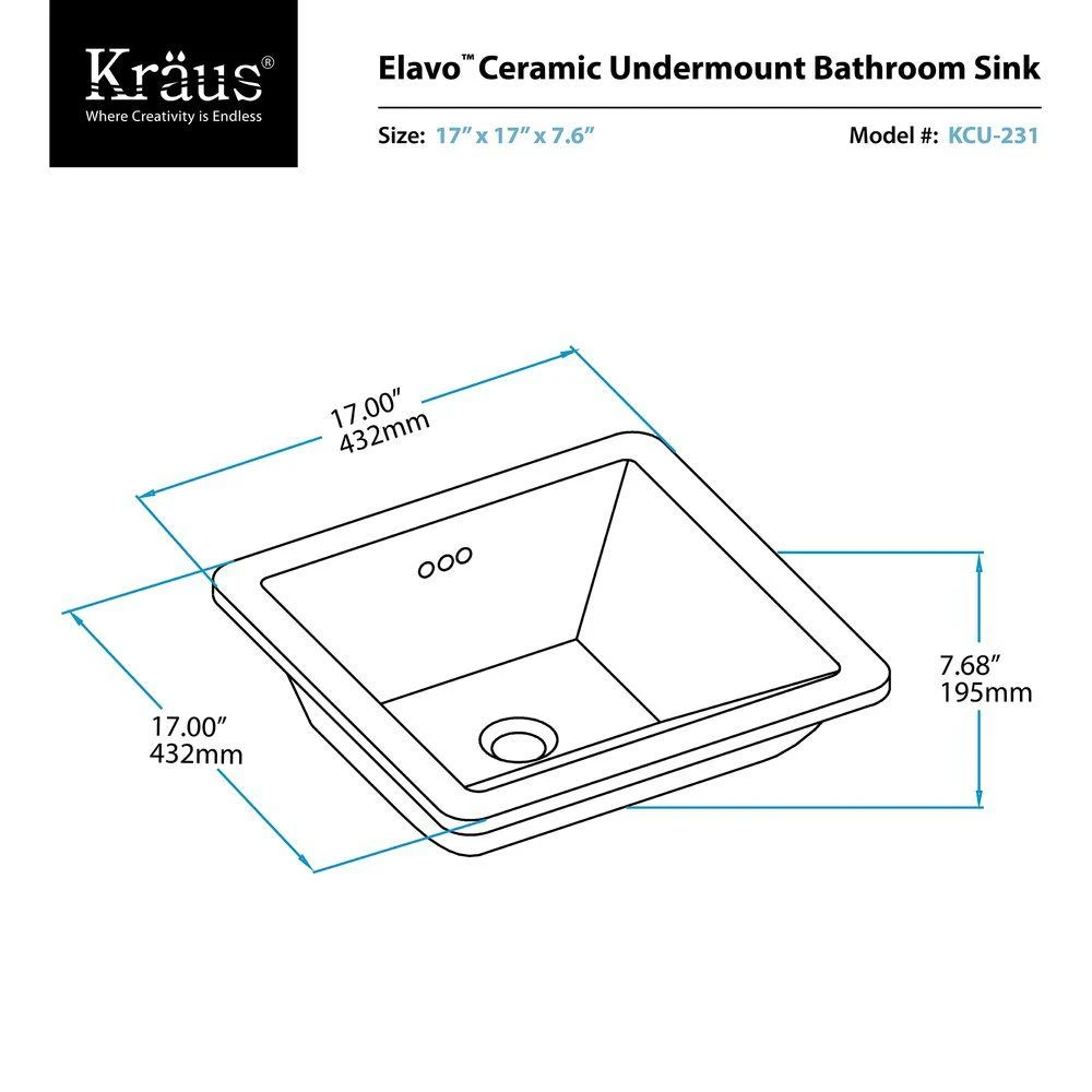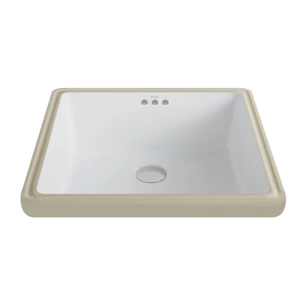 The new series of bathroom sinks from KRAUS offers a fresh take on classic white ceramic. The square shape of this undermount basin complements a range of decor styles, from traditional to contemporary. The smooth, non-porous surface is naturally hygienic and durable, with a premium baked-on glaze for an easy-to-clean high-gloss finish. This model is ideal for retrofitting, with a 1 3/4 in. drain opening designed for standard US plumbing connections. Pair this sink with a KRAUS centerset or widespread faucet for a beautifully coordinated bathroom.