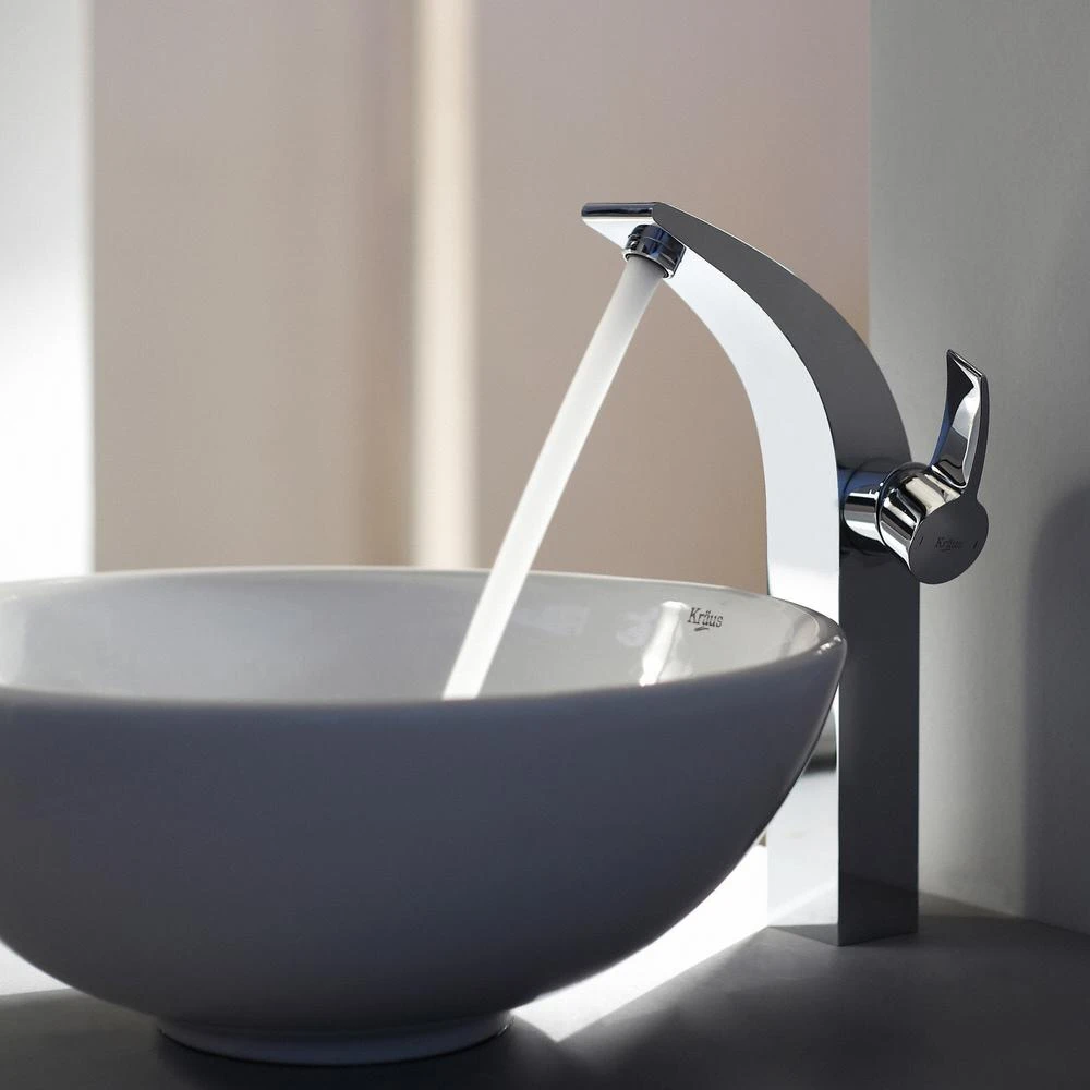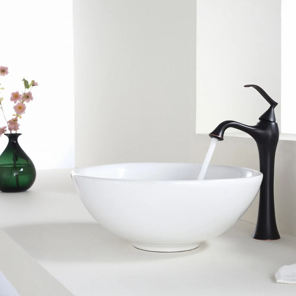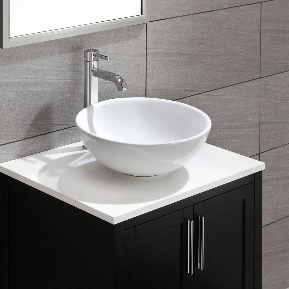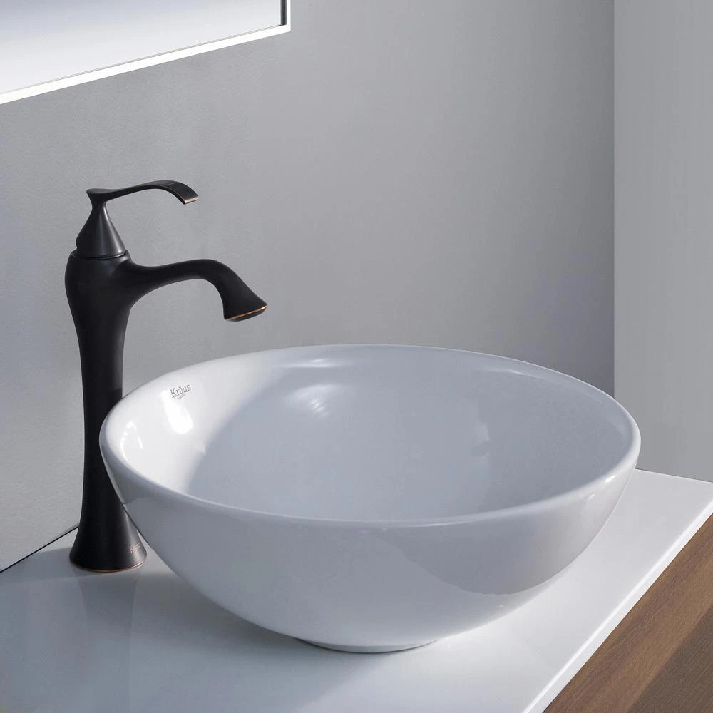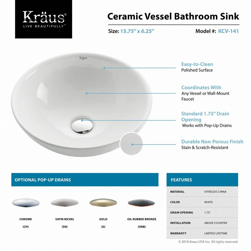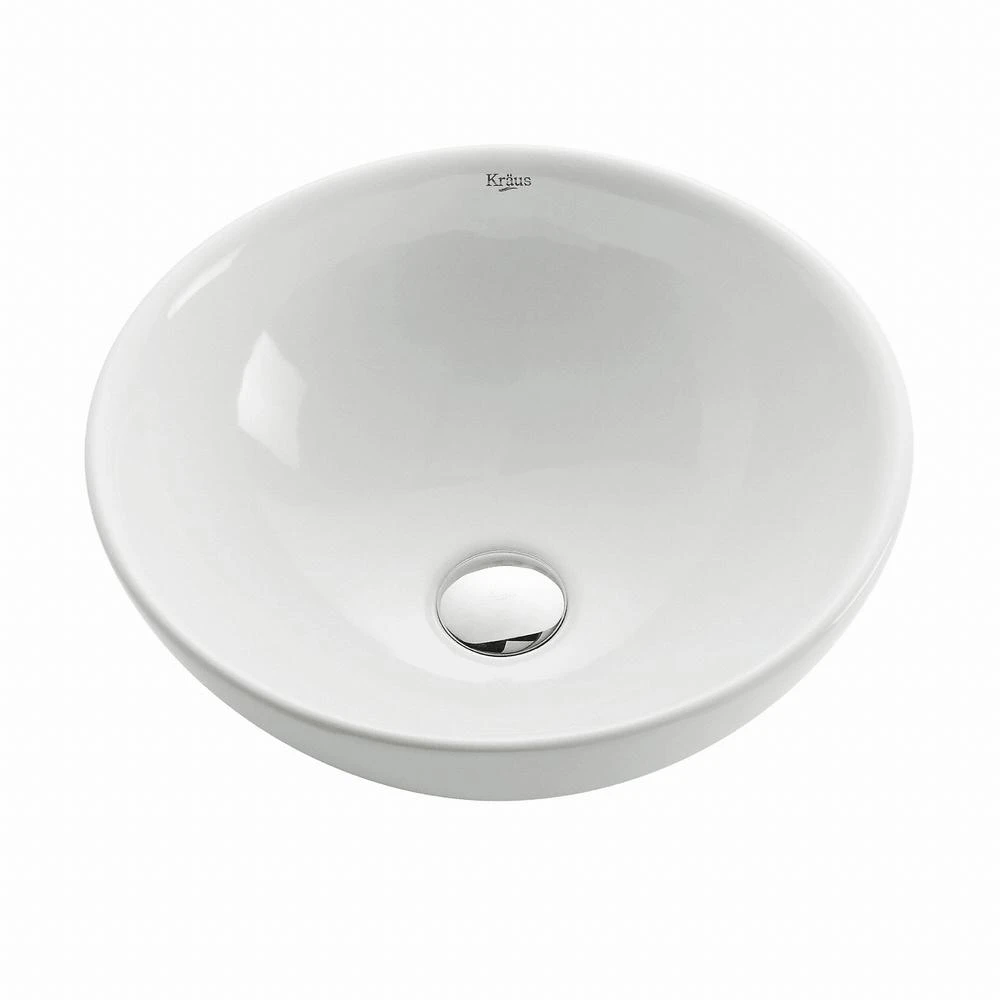 Set the tone for your bathroom decor with the versatile style of white ceramic. KRAUS offers a fresh take on this classic material with sinks that suit any style, from the traditional to the modern bathroom. This sleek vessel sink has a smooth, non-porous surface with a baked-on glaze for added durability and a high-gloss finish. Simply wipe the sink surface with a damp cloth to keep it looking beautiful with minimal maintenance. Above-counter mounting frees up space on the bathroom counter and lets you bring your best bathroom design ideas to life. Pair this KRAUS sink with any vessel sink faucet for a stylish look, and experience KRAUS Quality.
