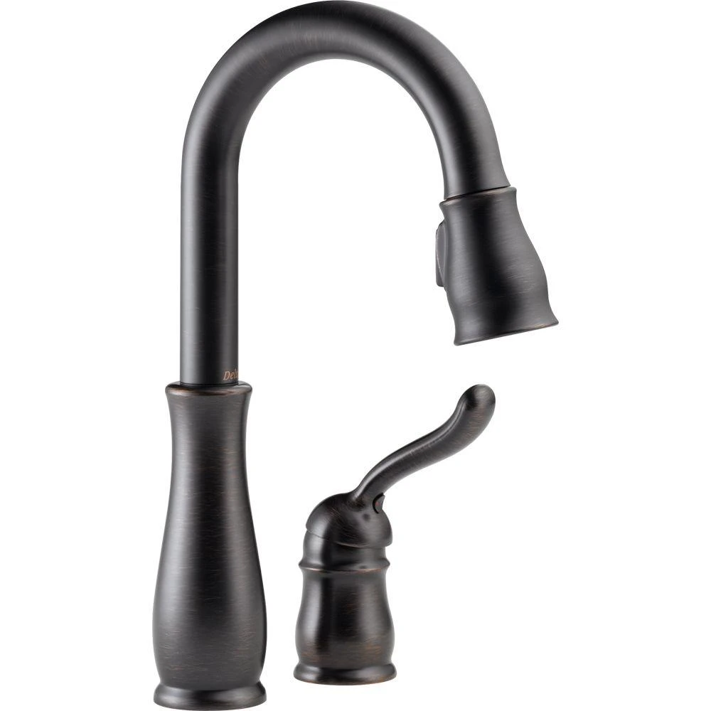 The Delta Leland Single-Handle Bar Faucet in Venetian Bronze comes with supply lines and a lever handle to help you with installation. A 1.5 Gal. per minute water-efficient sprayer assembly (part # RP60734RB) can be purchased separately. This ADA-compliant faucet has a high-arc spout with a nearly 7 in. reach for easy access to water. The Single-Handle handle is easy to operate.
