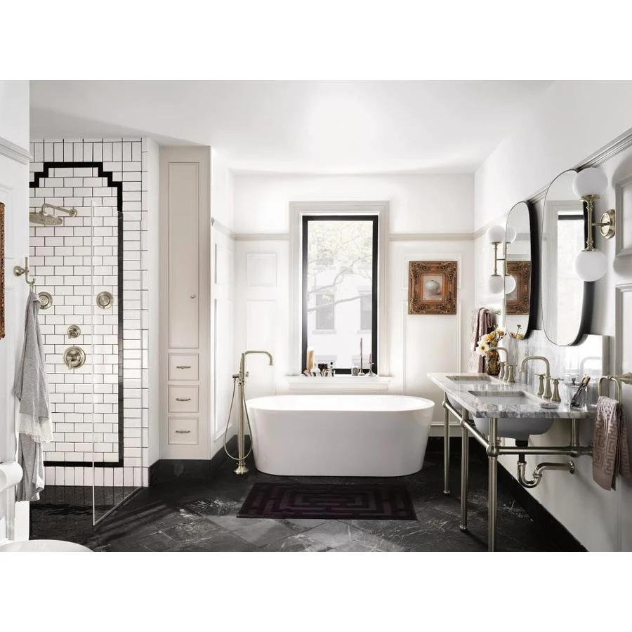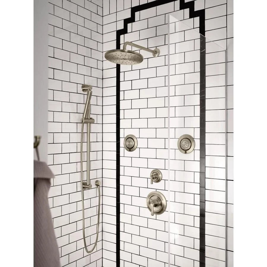 Brushed-nickel finish provides a lightly-brushed, warm-grey metallic look