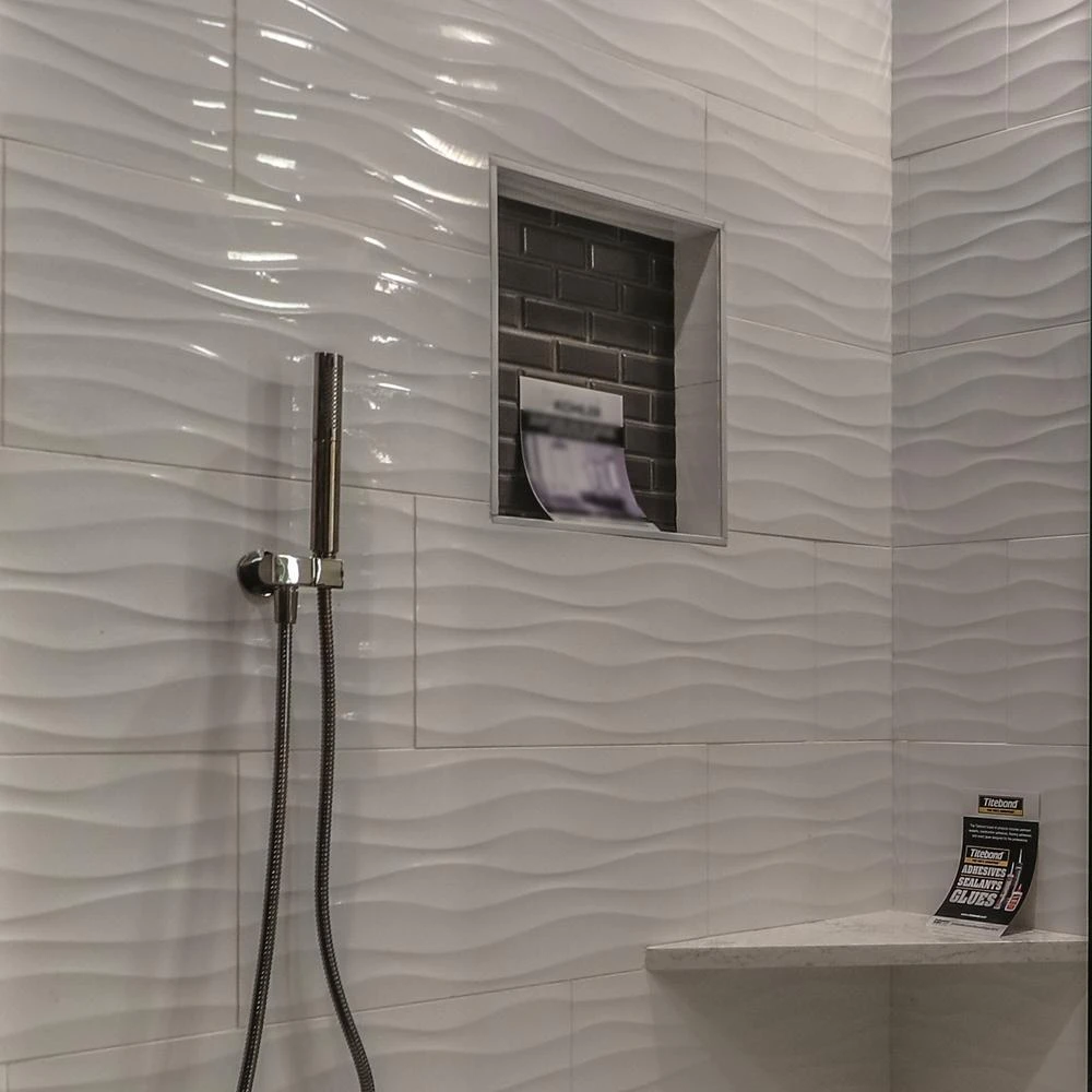 MSI’s Dymo Wavy White 12 in. x 24 in. Ceramic Wall Tile instantly updates any space with a trendy wave design that suggests movement. This large-format, rectangular plank is not only stylish, it’s also impressively low maintenance, durable and works well with any color palette. Use it as backsplash in the kitchen, then create visual cohesion by presenting it on a feature wall in other areas of your home. With a unique 3D glossy finish, this Dymo tile is especially stunning in the bathroom as a shower surround or wall tile for a modern spa-like ambiance. Whether used alone or paired with another Dymo tiles, this modern line of versatile patterns with creative 3D effects mix and match easily to achieve one of a kind looks. Dial up the dimension and interest in your residential or light commercial space with Dymo Wavy White Ceramic Wall Tile. This is a rectified tile, mechanically finished on all sides to achieve uniformity. Its precise sizing allows for a thinner grout joint, which results in a clean, professional install and reduces staining issues.