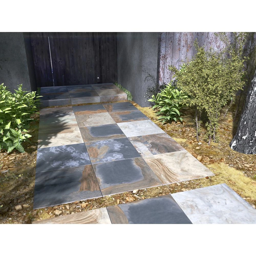 MSI’s Mystique Multi 24 in. x 24 in. x 0.79 in. Porcelain Paver sets your residential or light commercial project apart from the rest. Featuring an eye-catching mix of browns, grays, beiges and rust, this natural stone look paver creates a warm, welcoming ambiance that’s always in style. It can also withstand freeze thaw cycles, making it suitable for most residential and light commercial outdoor flooring applications. Additionally, it’s slip resistant and its color and design won’t fade overtime. Easy to install, stain resistant and low-maintenance, this large format porcelain paver is a top choice for those who want designer style without sacrificing practicality. Sand set it or place it directly on grass for a casual look or install with mortar over a concrete bed to achieve a more formal feel. Recommended for both interior and exterior design projects including floors, paths, driveways, pool areas and patios, this multitalented porcelain paver is a trend-setting design solution.