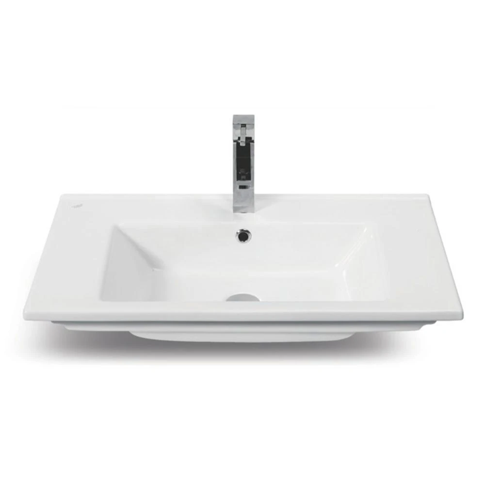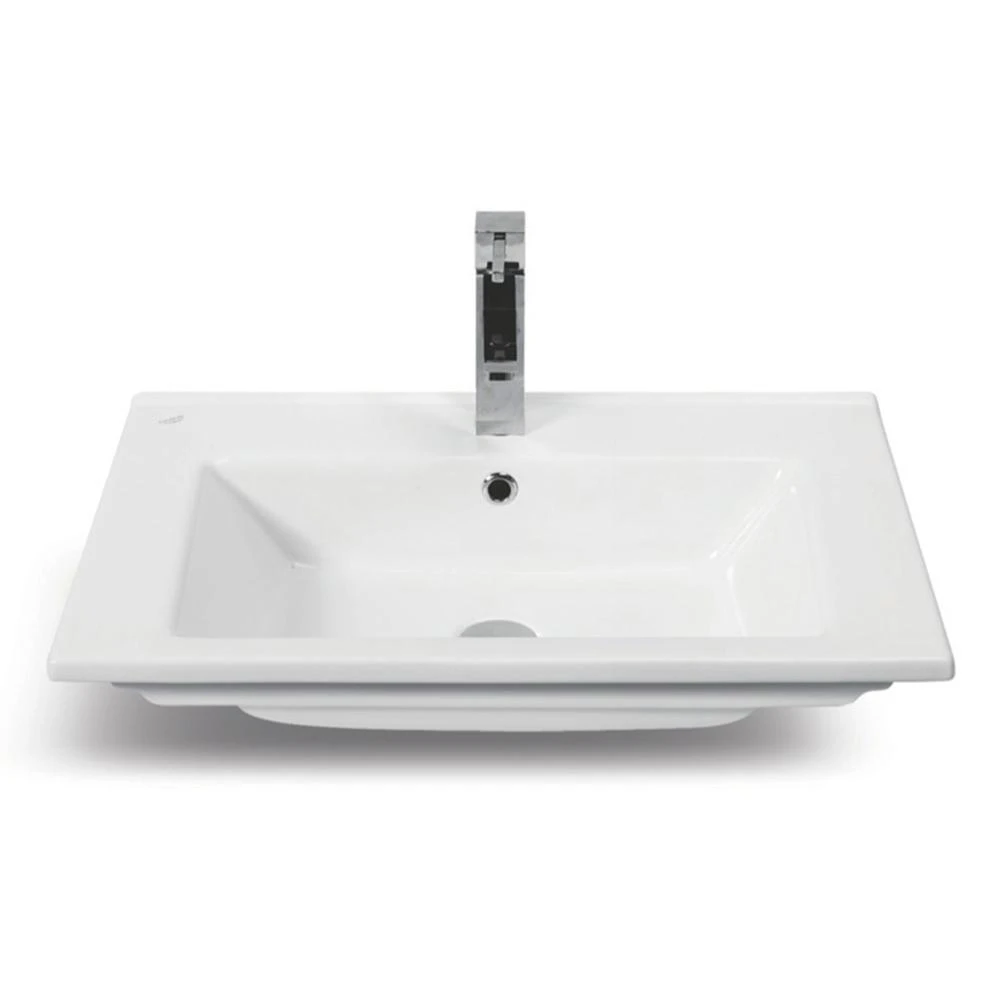 This 25.6 in. wall mounted or vanity top bathroom sink is made of white ceramic and features 1 pre-drilled faucet hole and an overflow. This contemporary bathroom sink can either be installed in a counter or place above a vanity. Made and designed by high-end and well known Turkish brand CeraStyle.