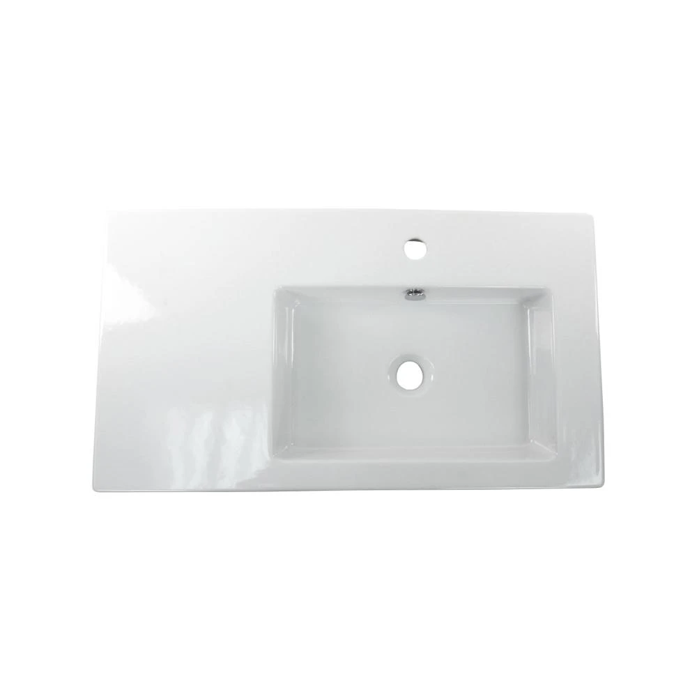 Rectangle white bathroom sink made from high quality ceramic. Modern style sink with drop-in or wall mount application. Sink has 1 pre-drilled faucet hole. Part of the Tecla Cangas collection. Made in Italy.