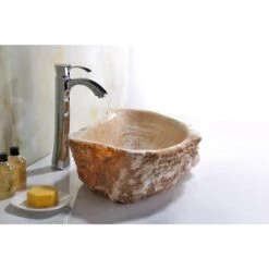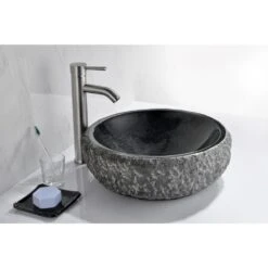 ANZZI Soave Series Deco-Glass Vessel Sink In Sapphire Wisp With Key Faucet In Brushed Nickel