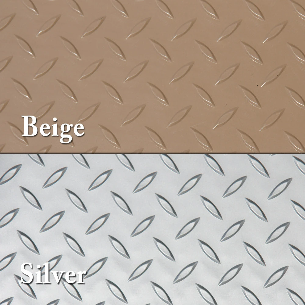 - A durable PVC floor and this Diamond-Plate Metallic has a unique visual design