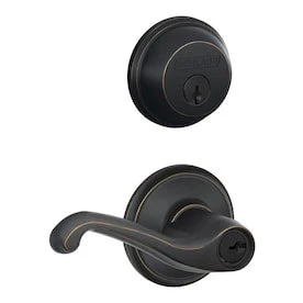 Schlage FB50 Flair Flair Aged Bronze Single-Cylinder Deadbolt Reversible Keyed Entry Door Handle Combo Pack (1 Handle And 1 Deadbolt)