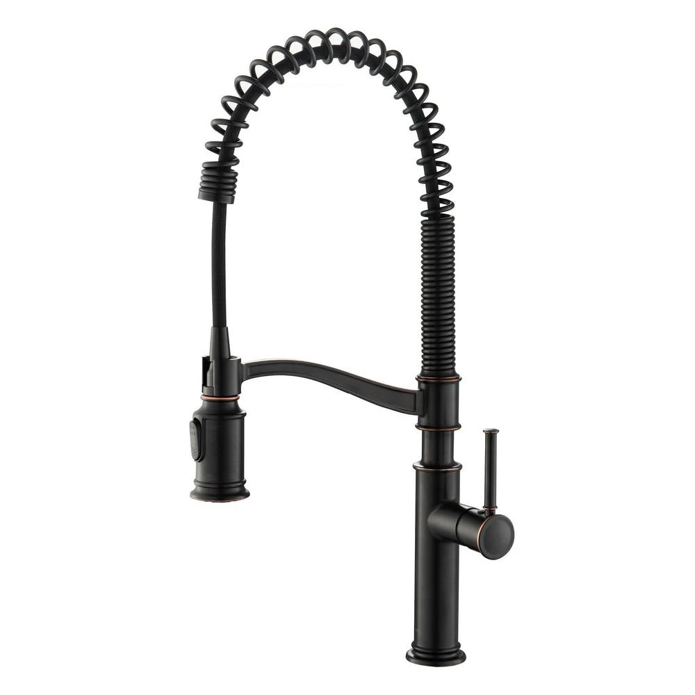 - Commercial pull-down design combines an industrial open coil spout with traditionally-inspired details for a timeless look, offers the convenience of a pull-down sprayhead with extended range of motion