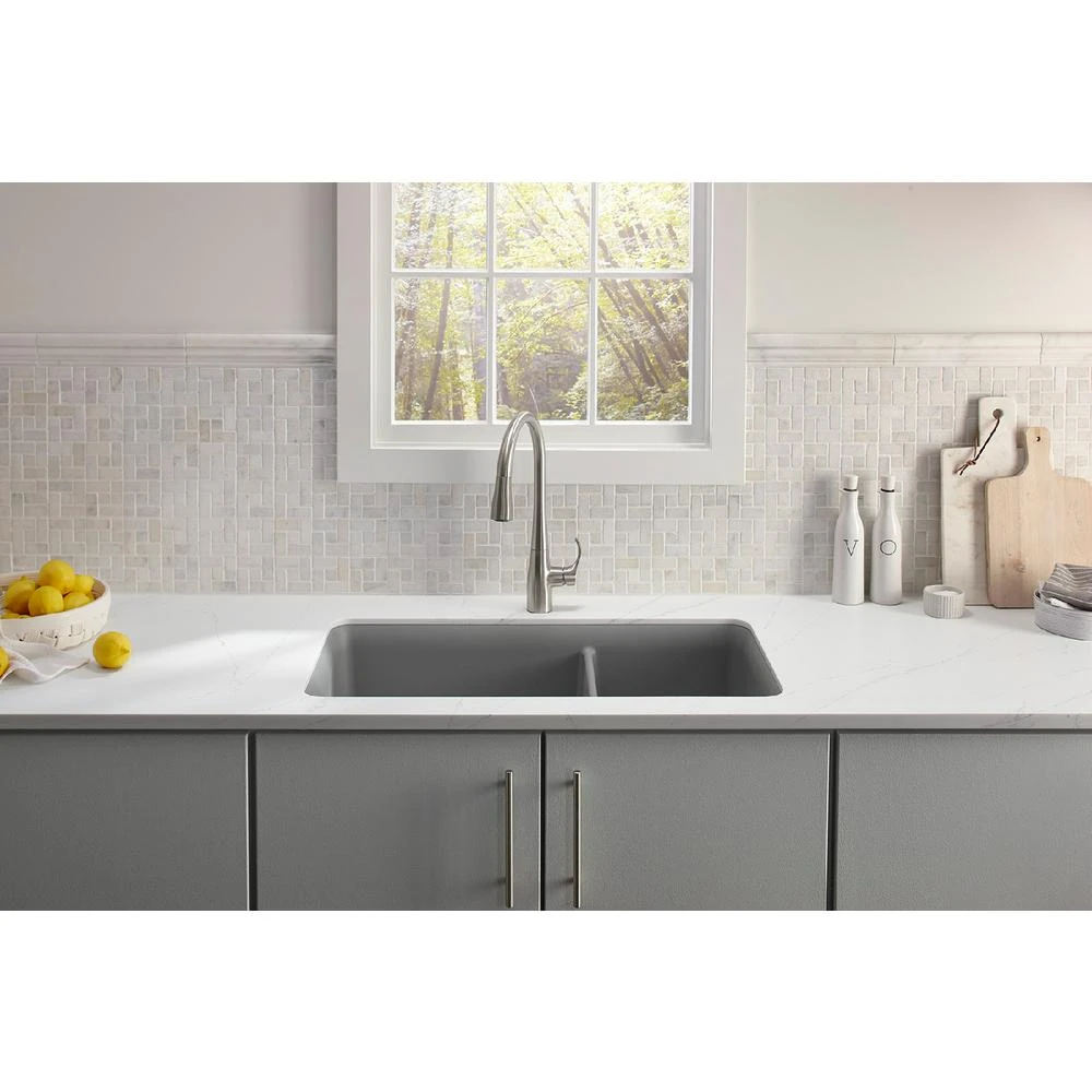 An innovative fit for a variety of kitchens and tasks, this Simplice kitchen faucet combines an elegant, universal design with exceptional ergonomics and functionality. The high-arch swing spout rotates 360 degrees, while the smoothly maneuvering sprayhead pulls down into the sink for up-close tasks, or out of the sink to fill pots. Sculpted buttons on the sprayhead ensure simple operation even with wet, soapy hands. Sweep spray creates a wide, forceful blade of water for superior cleaning. KOHLER’s new docking system, DockNetik, secures the pull-down sprayhead to the spout using magnetic force.