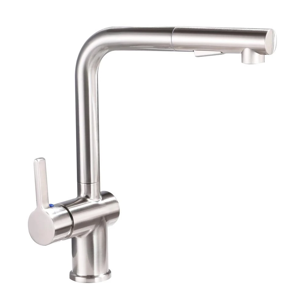 This Vanity Art Kitchen Faucet features an elegant design with a brushed nickel finish. The faucet comes with a pull-out spout to help extend and thoroughly clean your utensils and tools. Also, its robust brass waterway allows high-pressure water flow with zero internal damage and enhances product longevity.