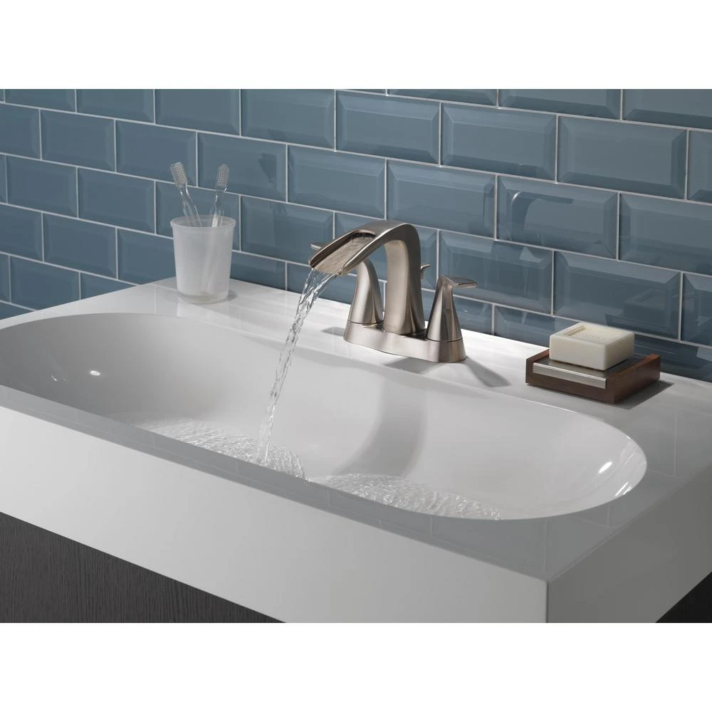 Elegant and enduring, this Tolva 4 in. 2-Handle Bathroom Faucet in Brushed Nickel will please for years to come. Its high-arc channel spout allows for plenty of clearance for washing hands or delicates. You can buy with confidence, knowing that Delta backs this faucet with a lifetime limited warranty.